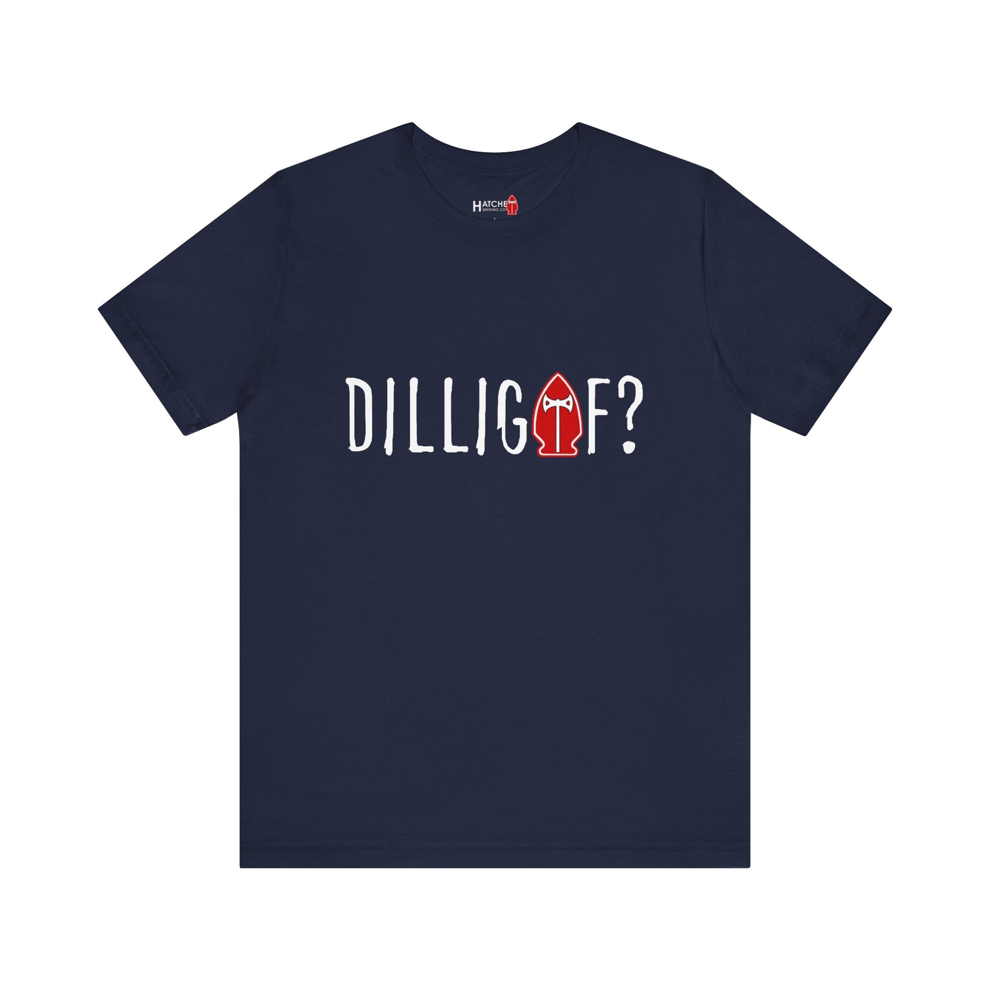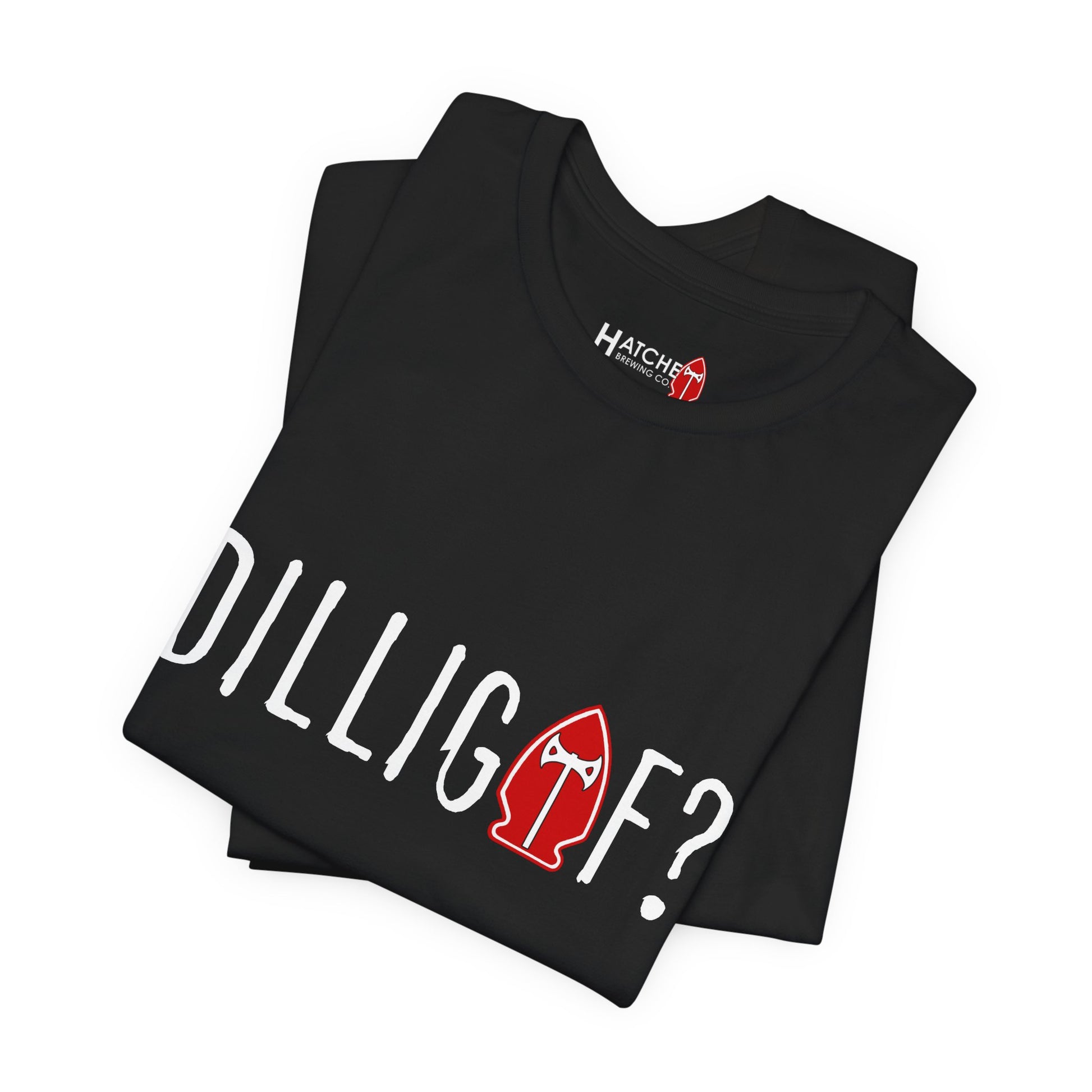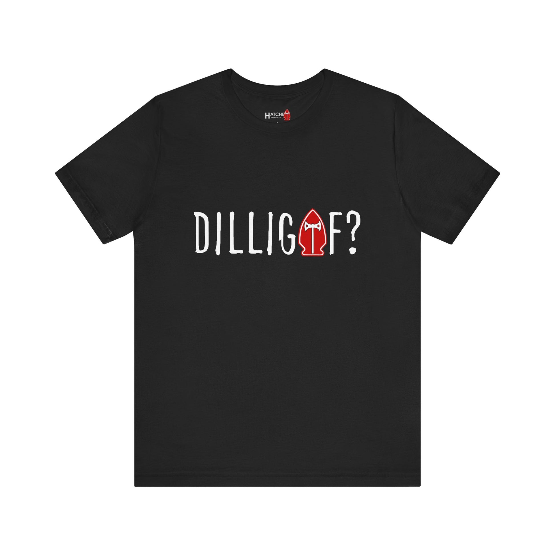 Our favorite comfy tee to remind folks how we really feel about drinking beer before 5:00 on a Tuesday. This style features our DILLIGAF logo on the front and our Hatchet Brewing logo on the back.
